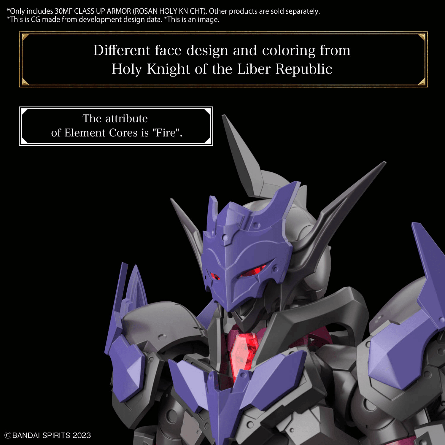 This "Class Up Armor (Rozen Holy Knight)" armor set from Bandai can be used with their "30MF (30 Minutes Fantasy)" series of plastic models! This set of armor and weapons can be "classed up" to a higher-tier job by doing armor replacement -- you can "class up" to Rozen Holy Knight by combining this armor with the Rozen Knight (sold separately). Holy Knight is a job that has swordsmanship abilities filled with divine power, and is also highly capable of physical defense. The face design and coloring are different from the Liber Republic's Holy Knight, which is sold separately. Order yours today!