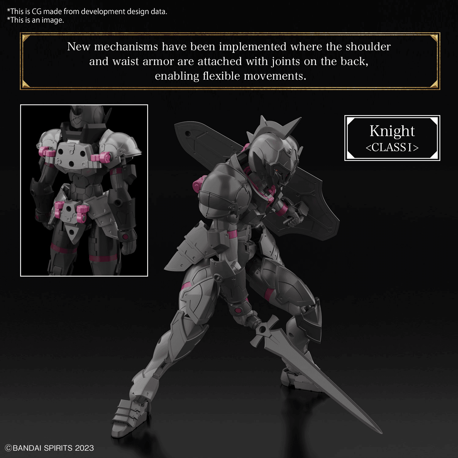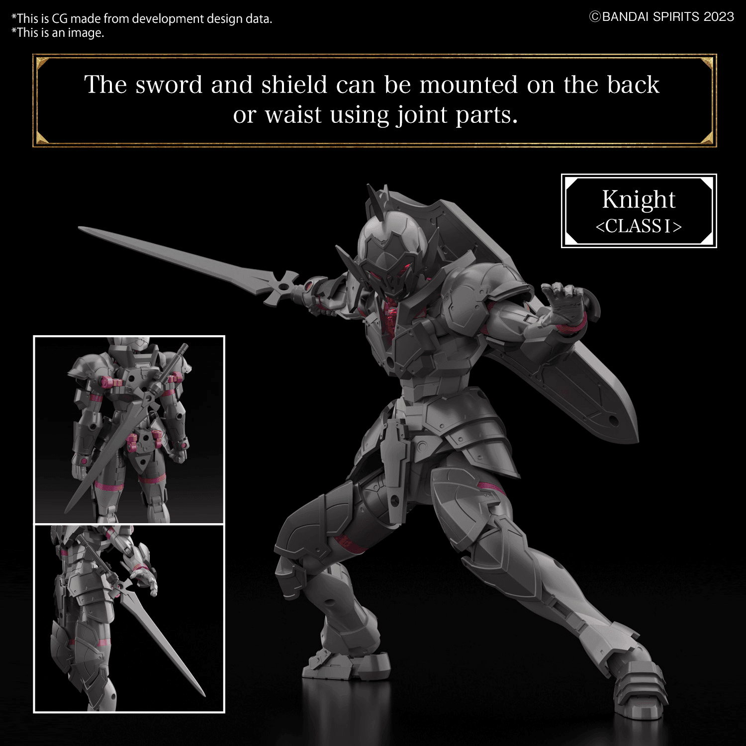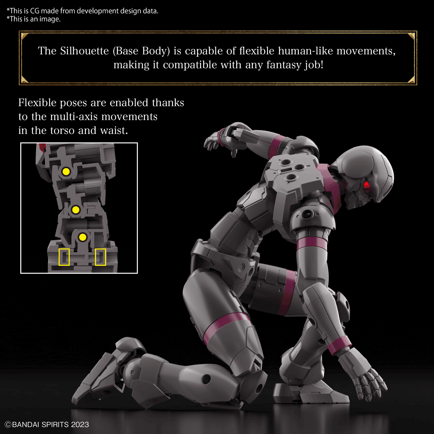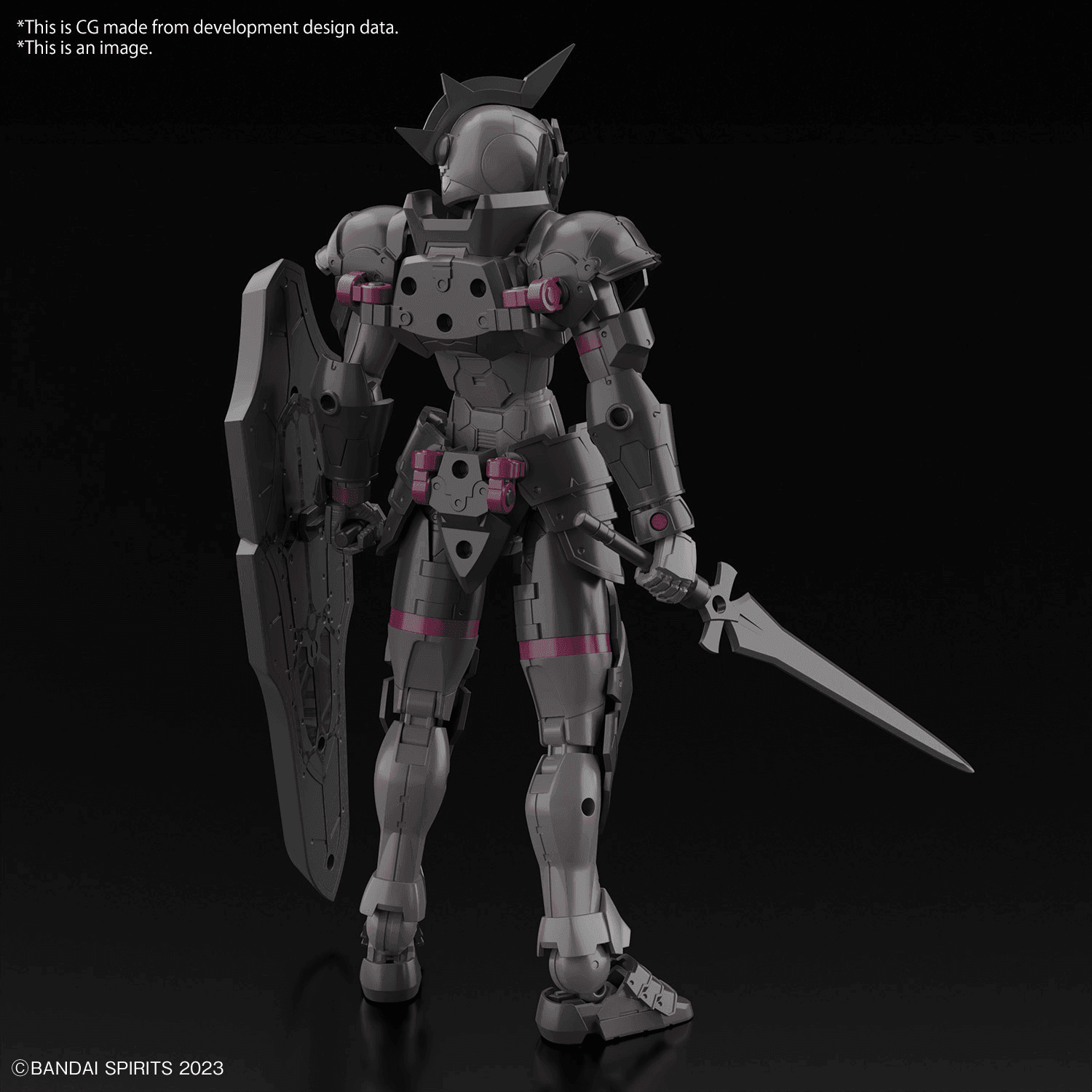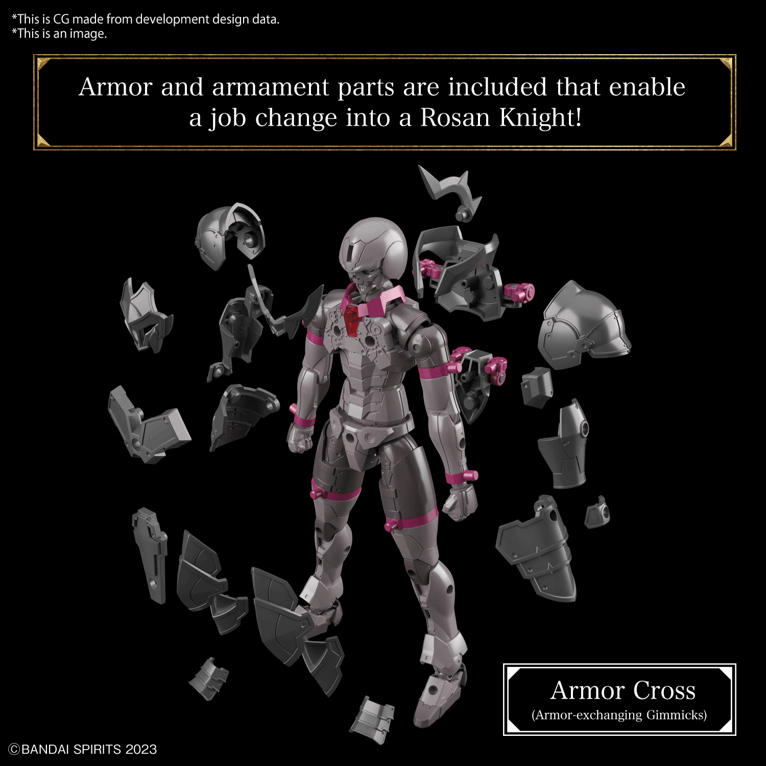 Bandai's new figure-kit series, "30MF (30 Minutes Fantasy)," debuts with the Rozen Knight! This new lineup allows you to create your own fantasy-based figures and characters! The starter set includes armor and armed parts in addition to the base "silhouette" (elementary body). The "silhouette" is fully posable like a human body; movable axes are provided on the head and neck for natural flexibility. The new structure of the shoulder joint keeps the body line intact, even in bold poses. The movable parts of the chest, torso, and waist work together with the sliding mechanism at the base of the waist joint to create natural poses. Armor and armed parts are included to combine with the "silhouette" to create the Rozen Knight! A new mechanism for attaching shoulder and waist armor via joints on the back allows for flexible movement; swords and shields can also be mounted on the back or waist with joint parts. Order him for your own collection today!
