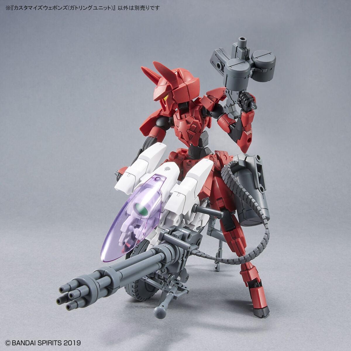 Customize up your 30MM/30Minutes Missions units with this Gatling Unit! By swapping up the parts you can alternate between Gatling mode and Railgun mode. The gun belt is made of softer materials for a heightened sense of realism. 3mm joints are utilized for optimal compatibility. Order now!