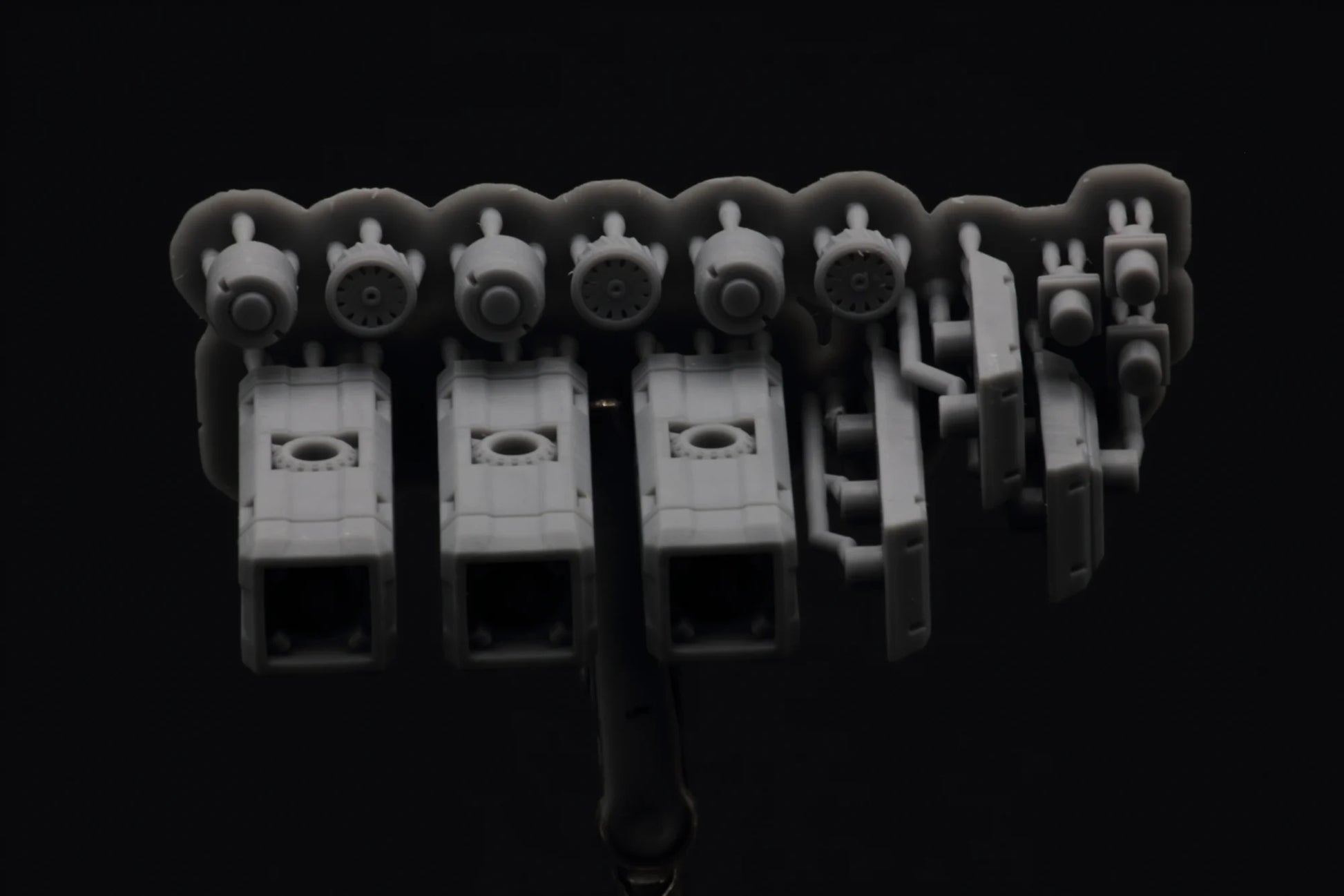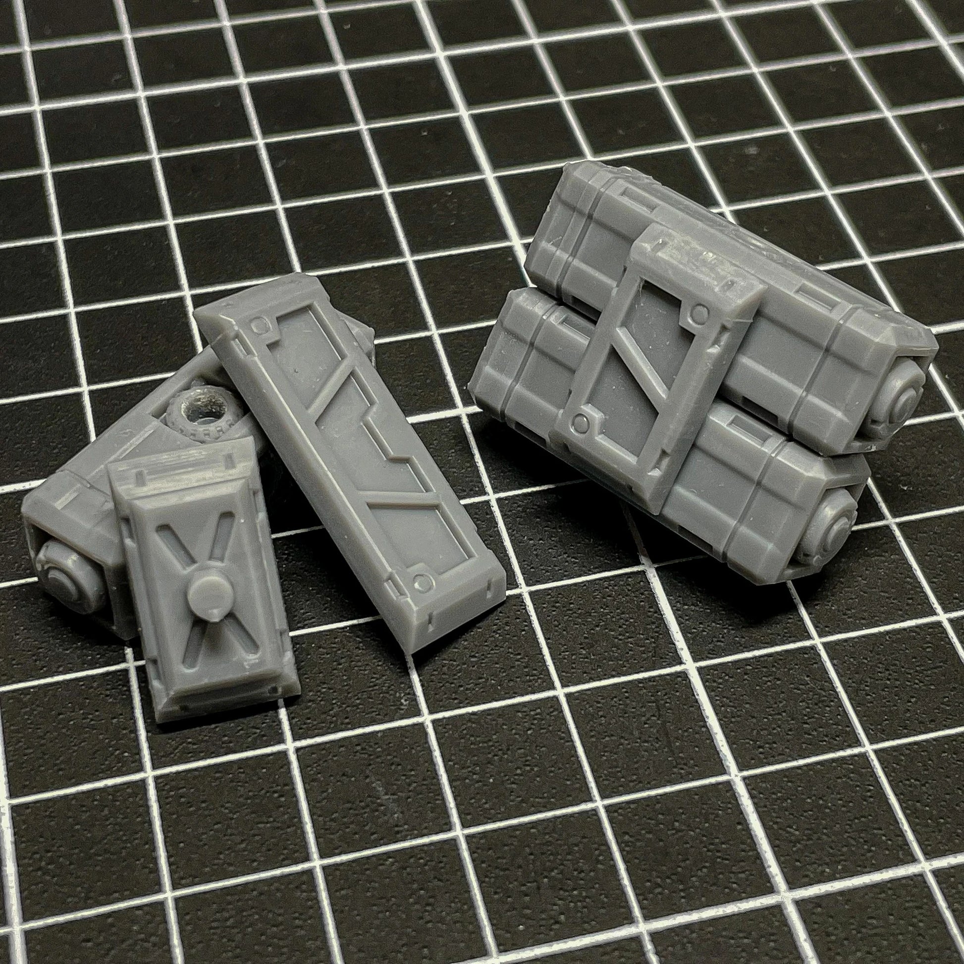 Includes modular missile detail for mecha models. Includes unique bridge pieces and pegs to string missile pods together to form larger arrays of destruction. Compatible with any 3mm peg system. (May require drilling and modification).