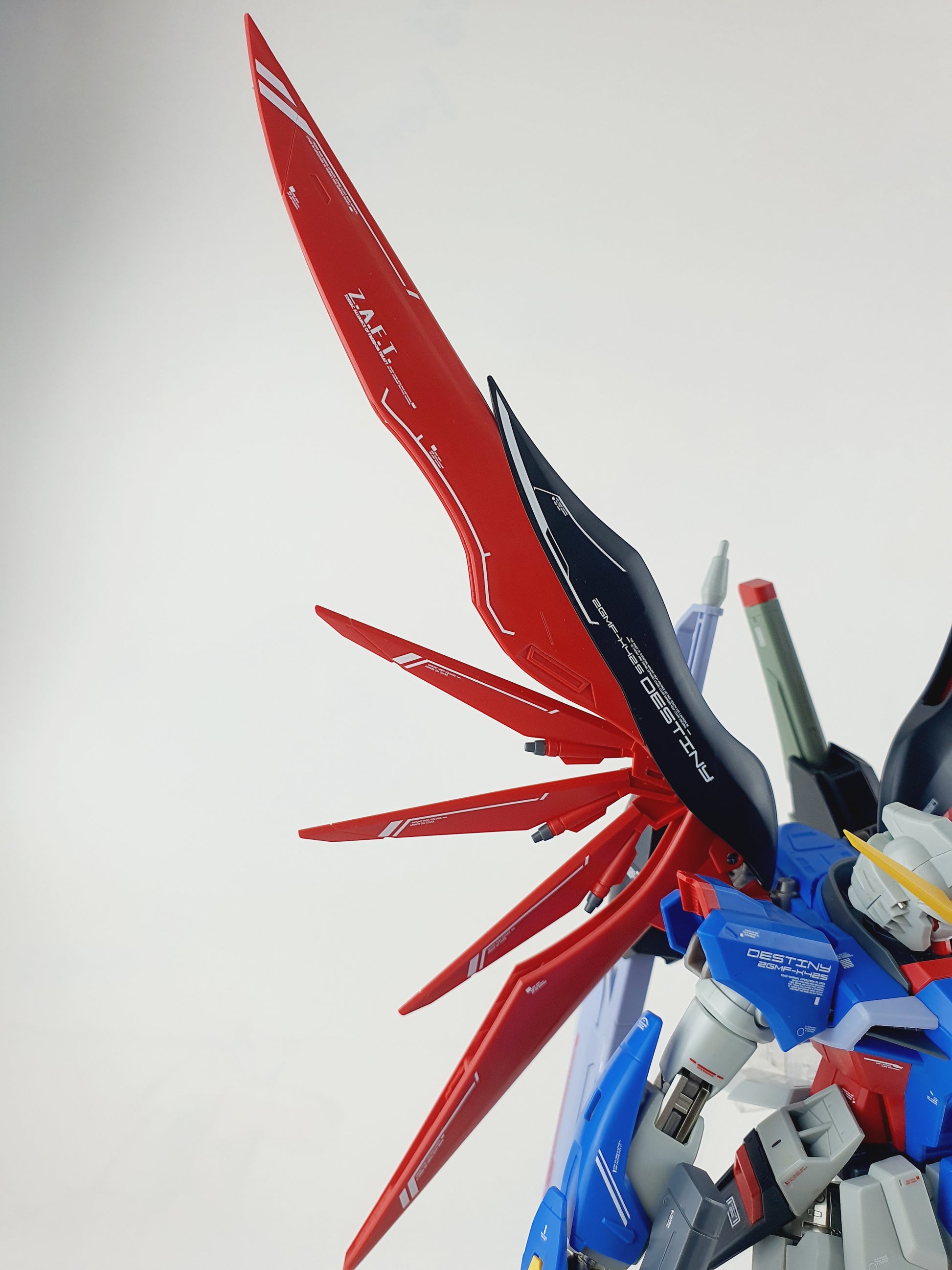 Custom water decals by Delpi Decal for the MG 1/100 Destiny Gundam from Gundam Seed Destiny.